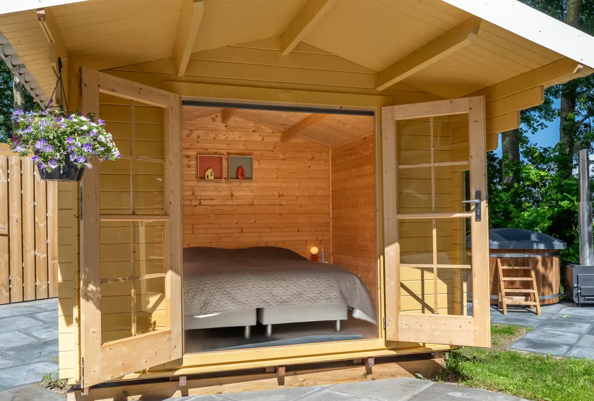 Een groep kan op Recreatiepark de Uilenburg verblijven in vijf slaapblokhutten, die plaats bieden aan maximaal 10 personen. Deze zijn geschilderd in traditionele kleuren waardoor je je in een Scandinavisch dorp waant. Naast de blokhutten staat de voormalige waterzuiveringsloods met daarin een gezamenlijke ruimte. Geniet hier van je hapje en drankje in optimale vakantiesfeer. Vlak bij de blokhutten vind je de sanitaire voorzieningen. De blokhutten staan in een halve cirkel bij elkaar en geven je het gevoel dat de Uilenburg helemaal alleen van jullie groep is. Voor de blokhutten kun je gezellig zitten op al aanwezig meubilair. De blokhutten zijn voorzien van stroom en verlichting. Buiten in de ruime tuin je genieten van een houtgestookte hottub of met het hele gezelschap plaatsnemen aan de picknicktafel en genieten van het uitzicht over de haven en de landerijen.